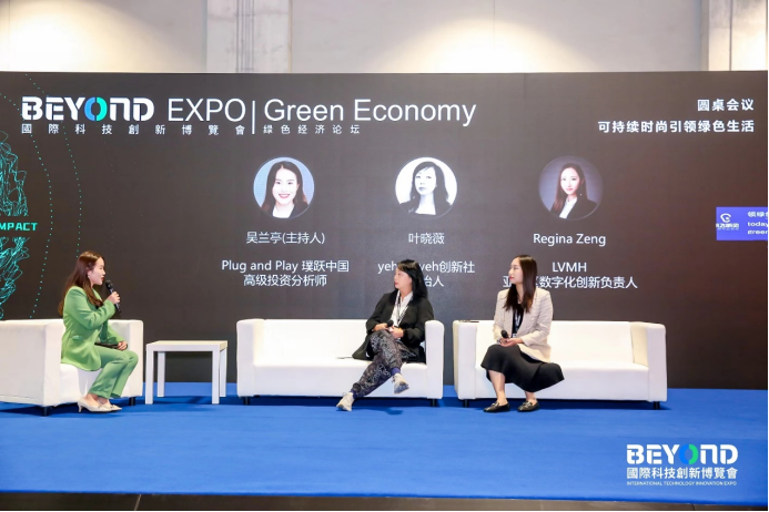 在2021年BEYOND Expo中,BEYOND组委会联合Plug and Play璞跃我国一起打造了绿色经济论坛,与会进程中,LVMH亚太区数字化立异负责人Regina Zeng,yehyehyeh立异公司的创始人叶晓薇,璞跃我国高档出资分析师吴兰亭就可继续时髦论题进行深度沟通,一起评论前瞻新形势下可继续时髦开展的未来趋势。